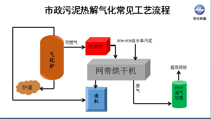 市政污泥熱解氣化常見工藝流程: