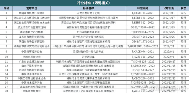 行業(yè)標準方面,國家于年中施行標準《水泥窯協(xié)同處置污泥及污染土中重金屬的檢測方法》,且剛剛結束了兩項污泥協(xié)同處置廚余垃圾相關標準的征意工作,此外,2022年累計發(fā)布的污泥相關標準10余項,環(huán)保在線匯總如下(如有缺漏,歡迎補充)↓